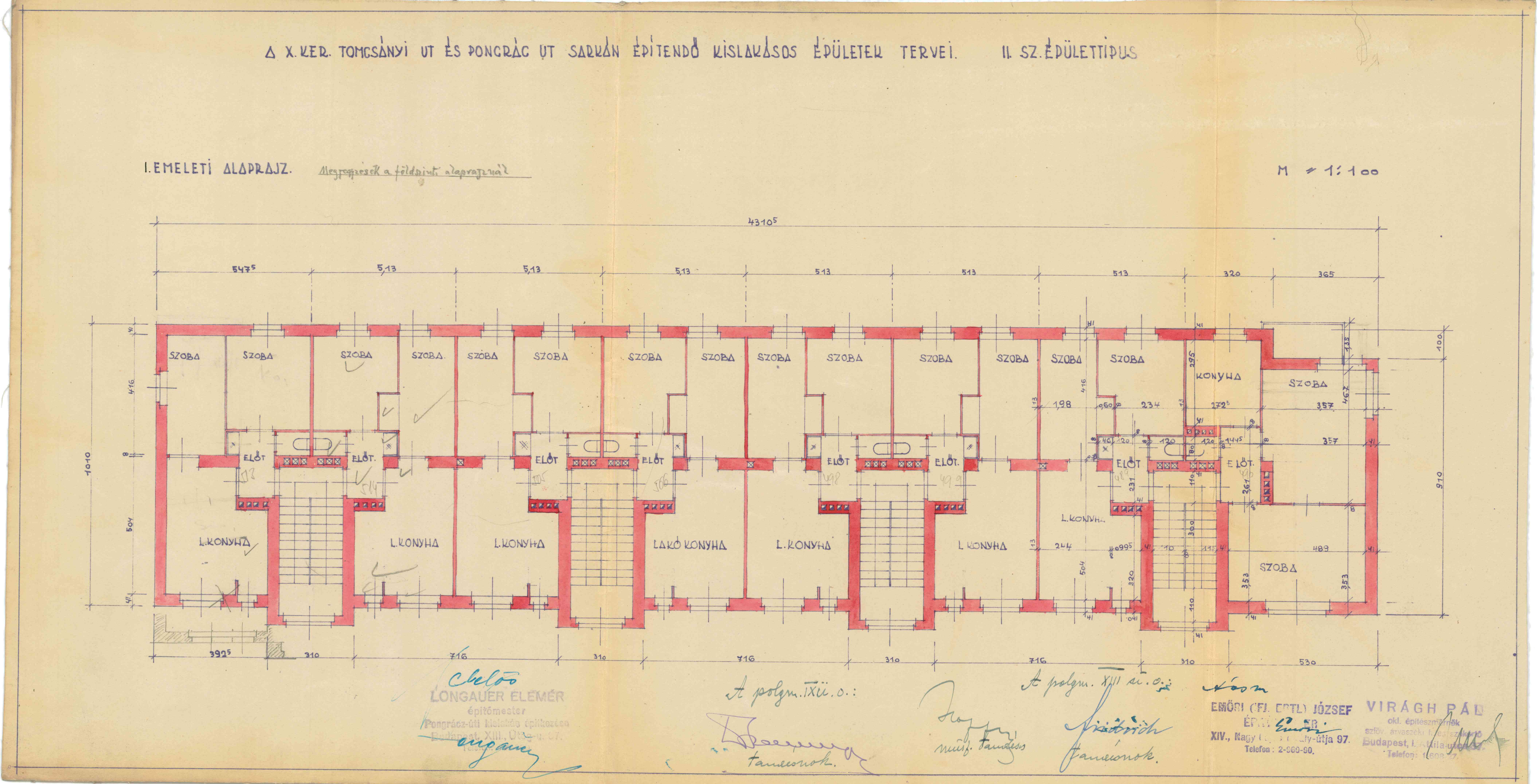 Pongrác út - Tomcsányi úti telep PreviousNext Toggle image Pongrác út - Tomcsányi út sarkán építendő kislakásos épület II. típus, I. emeleti alaprajz Dokumentum típusa Tervrajz Keletkezés ideje 1939 - 1940 Őrzési hely Budapest Főváros Levéltára Vonatkozó alkotás Pongrác út - Tomcsányi úti telep Jelzet HU BFL XV.17.d.329 - 38911/55 Szerző Virágh Pál Emőri József Építtető Budapest Székesfőváros Letöltés PreviousNext