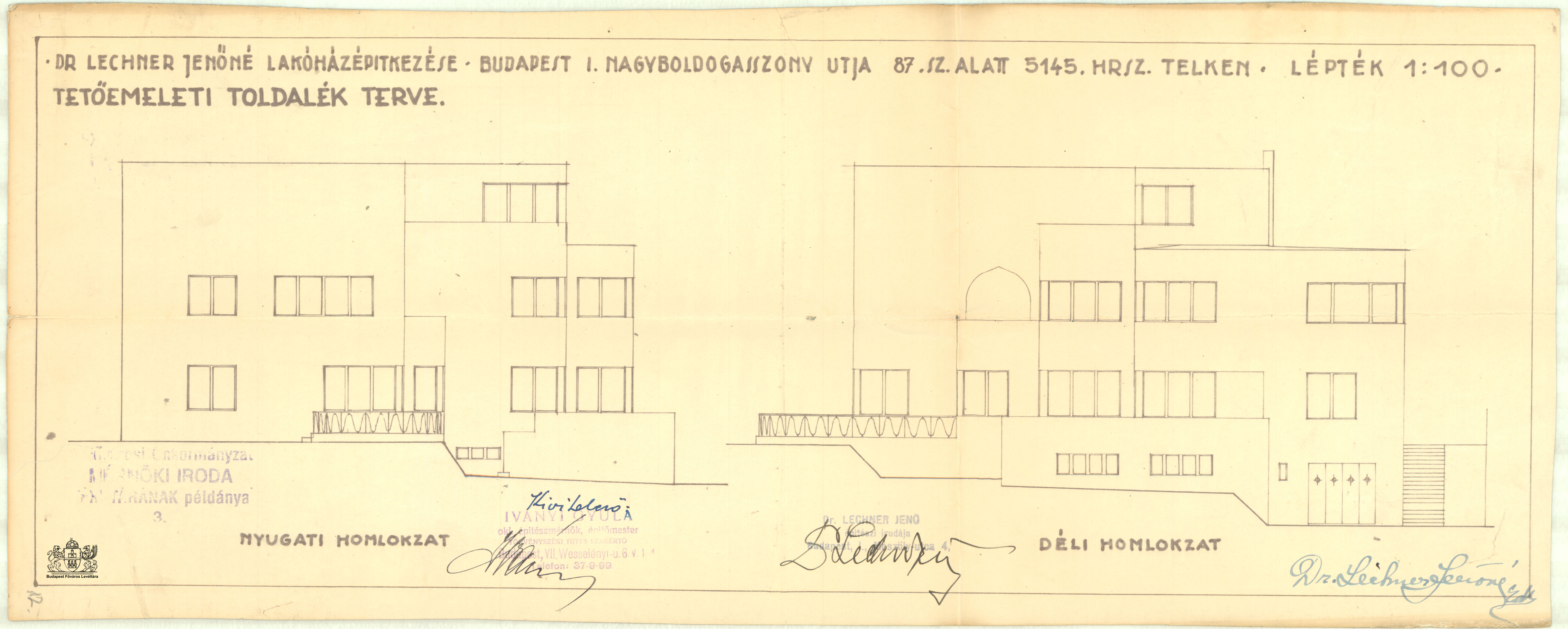 Ménesi út 87. Previous Toggle image Tetőemeleti toldalék homlokzata Dokumentum típusa Tervek Keletkezés ideje 1935 Őrzési hely Budapest Főváros Levéltára Vonatkozó alkotás Ménesi út 87. Jelzet XV.17.d.329 Letöltés Previous