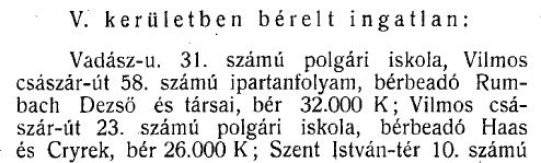 Bajcsy Zsilinszky út 23./Zichy Jenő utca 1. Next Toggle image A Vilmos császár út 23. fővárosi bérlete polgári iskola céljára Dokumentum típusa A Vilmos császár út 23. fővárosi bérlete polgári iskola céljára Keletkezés ideje 1919.05.02 Vonatkozó alkotás Bajcsy Zsilinszky út 23./Zichy Jenő utca 1. Jelzet Fővárosi Közlöny 1919.05.02. Letöltés Next